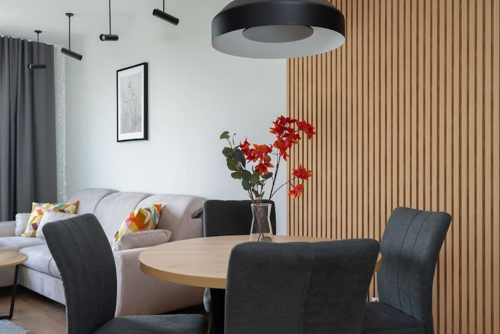 Apartament typu Deluxe z 1 sypialnią i widokiem na miasto. This apartment comes with 1 living room, 1 separate bedroom and 1 bathroom with a walk-in shower and free toiletries. In the fully equipped kitchen, guests will find a stovetop, a refrigerator, a dishwasher and kitchenware. The air-conditioned apartment features a flat-screen TV with streaming services, a washing machine, soundproof walls, a tea and coffee maker as well as city views. The unit has 2 beds. Apartament - 4 osobowy. Powierzchnia pokoju ok.: 41 mkw.