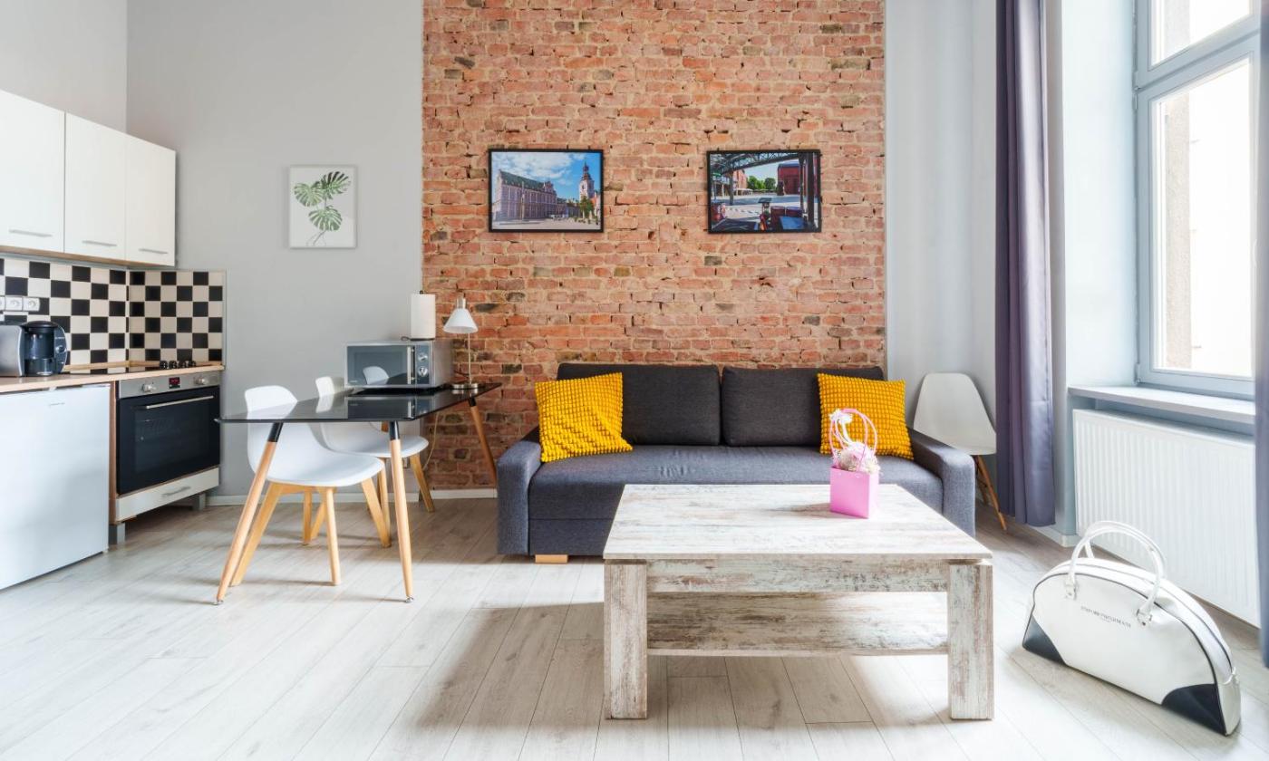 Apartament typu studio. The apartment has a private bathroom, a washing machine, a tea and coffee maker, as well as a seating area with a flat-screen TV. The fully equipped kitchenette features a stovetop, a refrigerator, kitchenware and an oven. The apartment offers a dining area, a wardrobe, a dressing room, a TV, as well as ancourtyard view. The unit has 2 beds. Apartament - 4 osobowy. Powierzchnia pokoju ok.: 18 mkw. ;